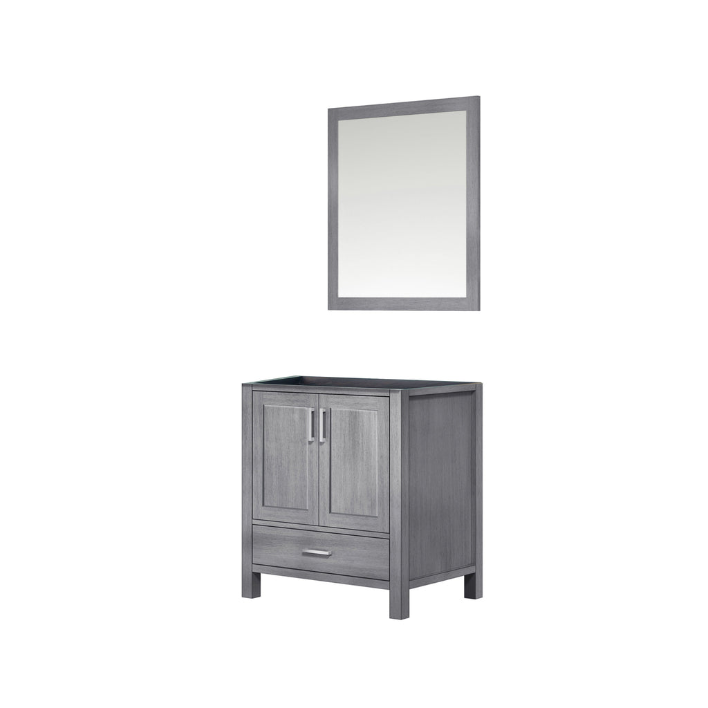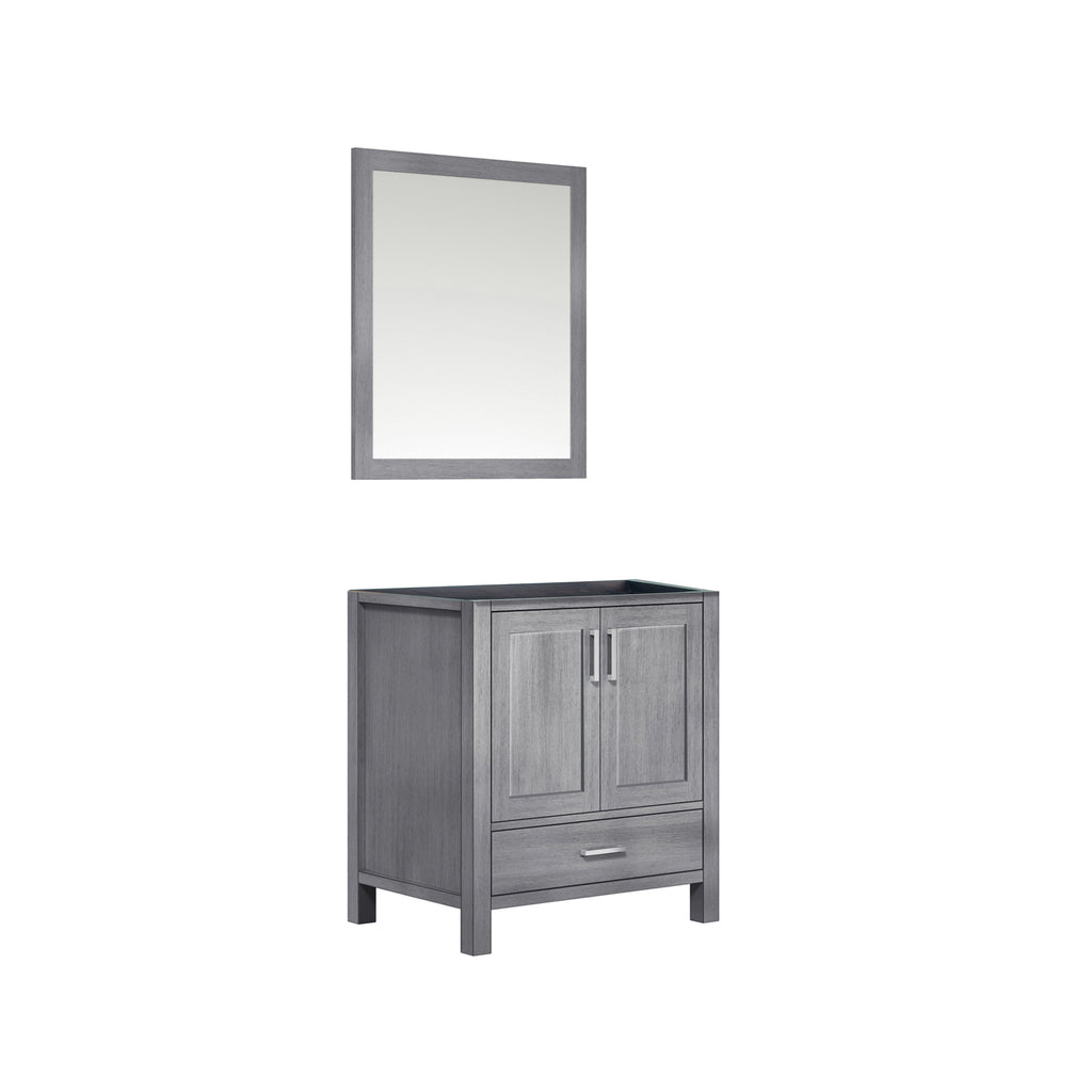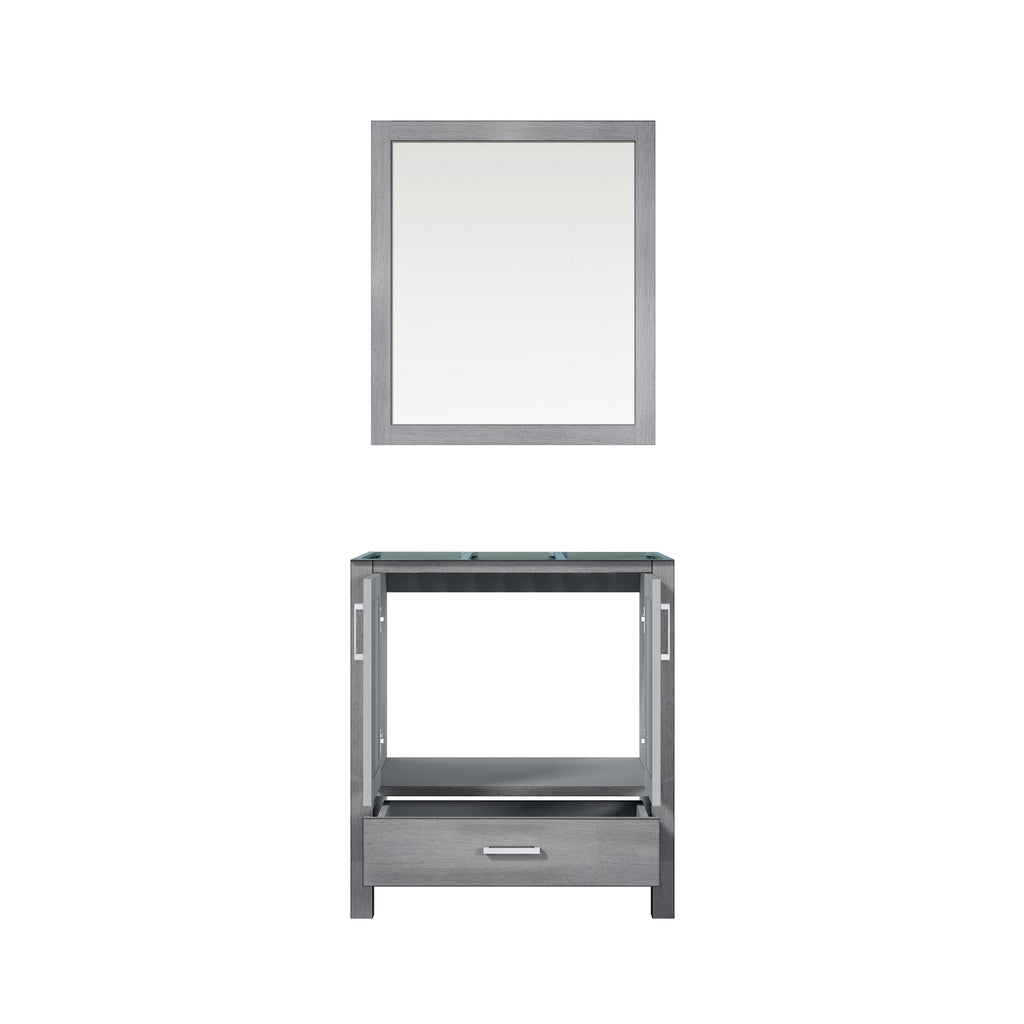Lexora Jacques 30" Distressed Grey Single Vanity, no Top and 28" Mirror LJ342230SD00M28