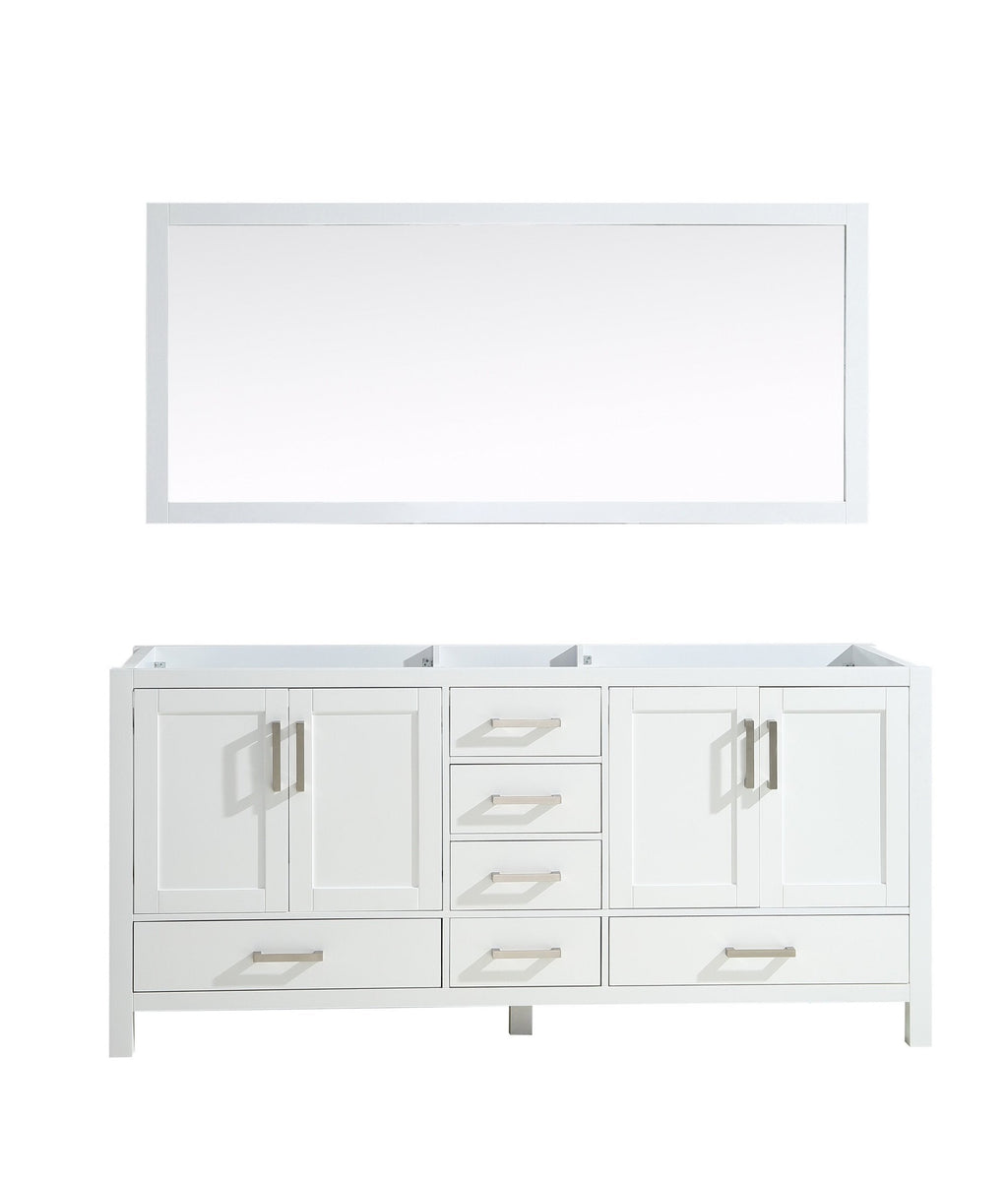 Lexora Jacques 72" White Double Vanity, no Top and 70" Mirror LJ342272DA00M70