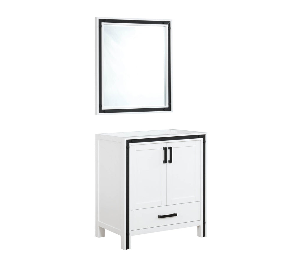 Lexora Ziva 30" White Single Vanity, no Top and 28" Mirror LZV352230SA00M28