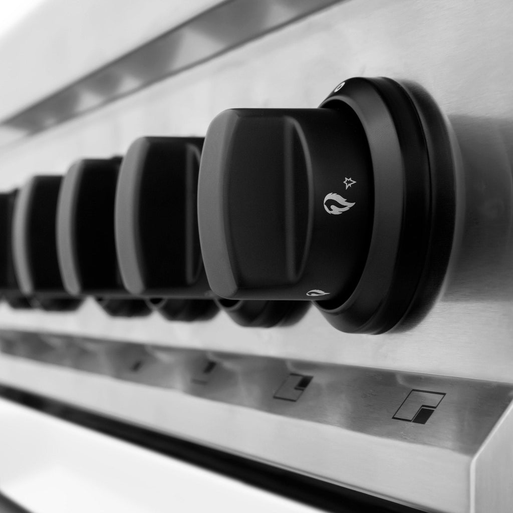 Combining the professional power and functionality of a ZLINE Range with stunning matte black accents, this sophisticated line of professional ranges brings a new meaning of elegance. Create an unforgettable kitchen unique to your style with matte black knobs, handles, legs, and brass burners.