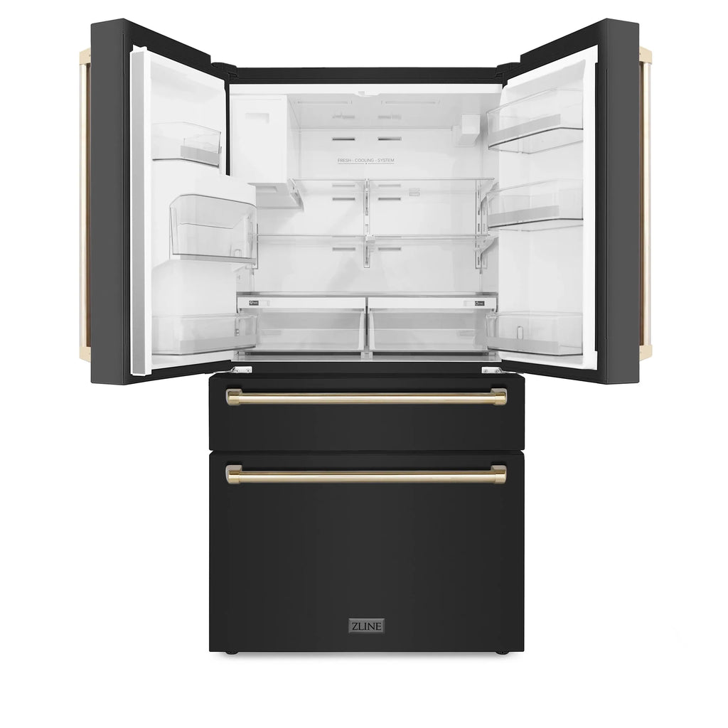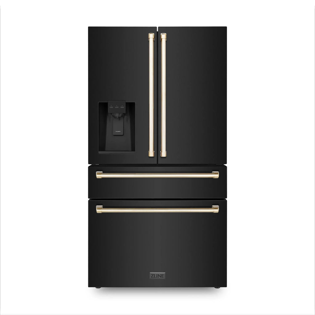 ZLINE 36" Autograph Edition 21.6 cu. ft Freestanding French Door Refrigerator with Water and Ice Dispenser in Fingerprint Resistant Black Stainless Steel with Autograph Handles - RFMZ-W-36-BS