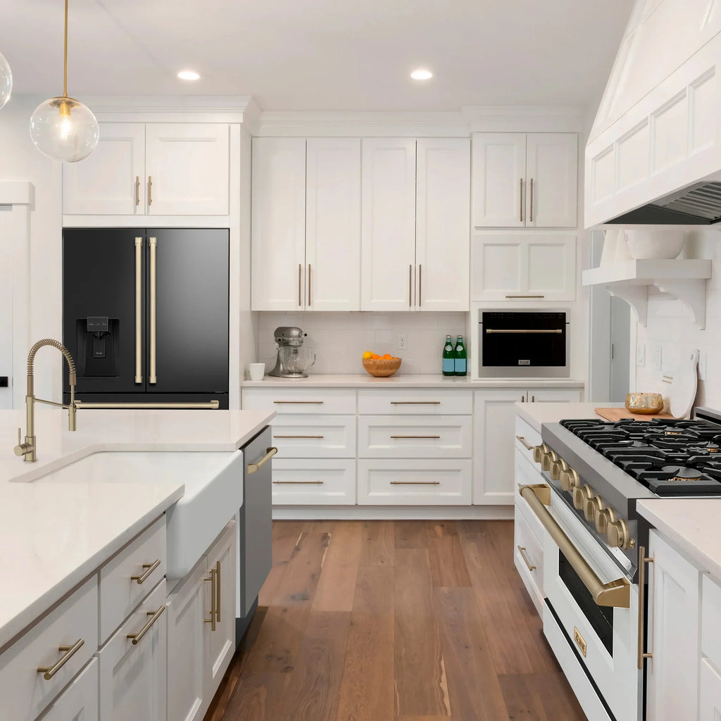 Choose from a variety of finishes from ZLINE's Autograph Edition, including: Champagne Bronze, Matte Black and Gold. The beauty of the Autograph Edition is infinite, just like the beauty found in Lake Tahoe and the Sierra Nevada Landscapes. From our home to yours, enjoy a luxurious experience with every Autograph Edition Refrigerator.