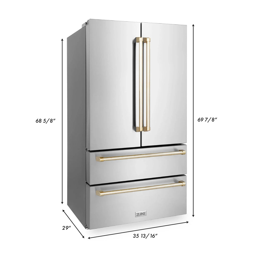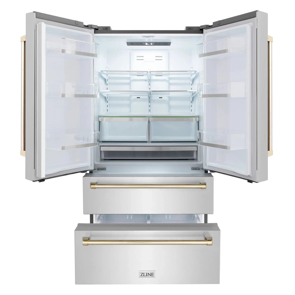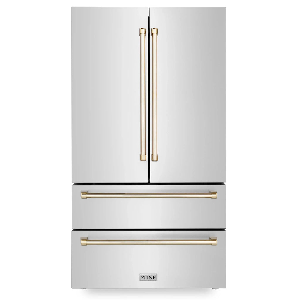 ZLINE 36" Autograph Edition 22.5 cu. ft Freestanding French Door Refrigerator with Ice Maker in Fingerprint Resistant Stainless Steel - RFMZ-36