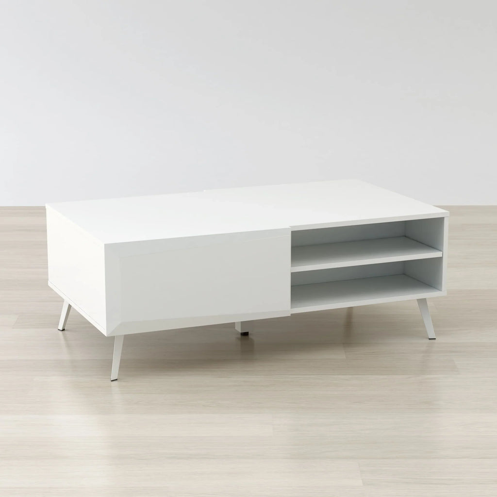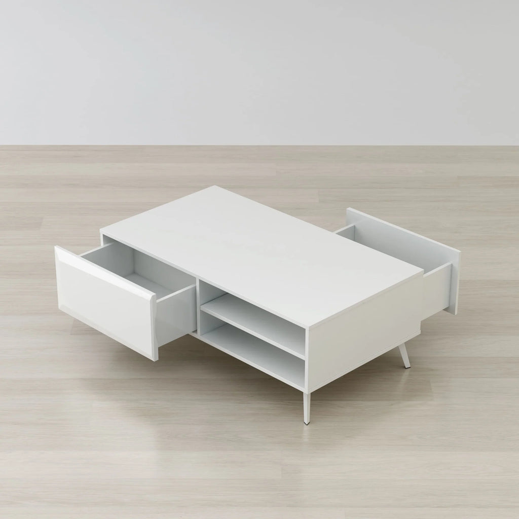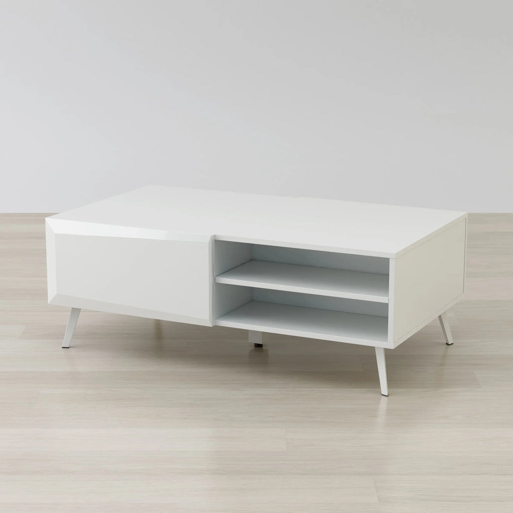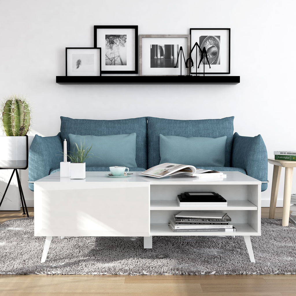 Enjoy your favorite cup of brew in the comfort of your home living room with this modern contemporary coffee table. The Altus Coffee Table made of engineered wood and finished in a white gloss laminate is a sleek and stylish coffee table featuring ample storage space to place your magazines, laptop, books and items. The perfect complement and look for any modern decor living room, this table integrates appearance with practical use.
