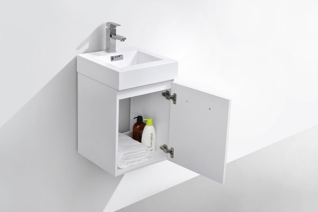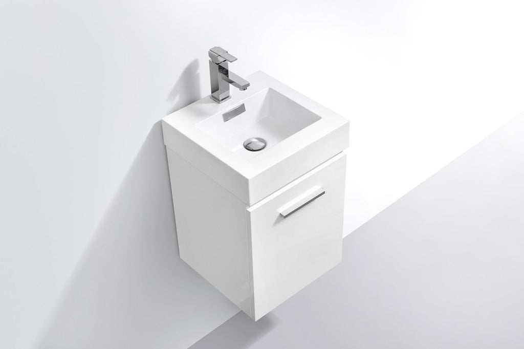 KubeBath Bliss 16" High Gloss White Wall Mount Modern Bathroom Vanity BSL16-GW