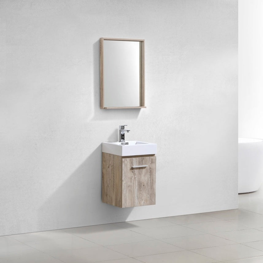 KubeBath Bliss 16" Nature Wood Wall Mount Modern Bathroom Vanity BSL16-NW