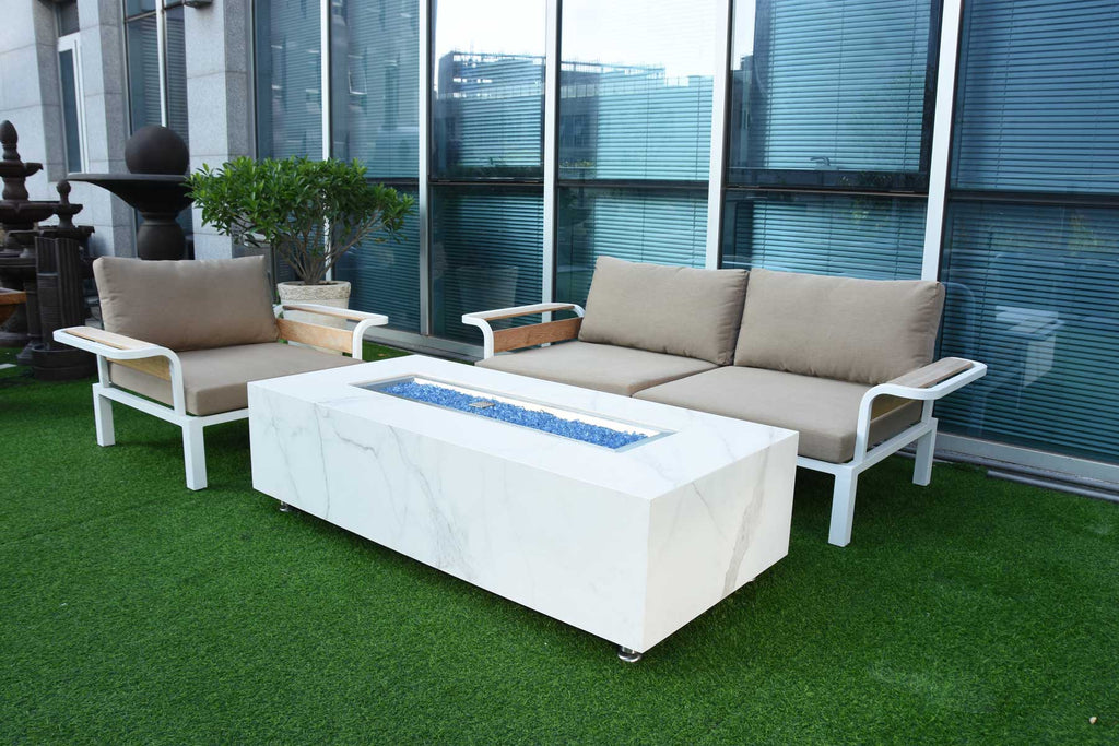 Elementi Carrara Bulgaria black Porcelain and Metal Frame Fire Table - OFP121BW