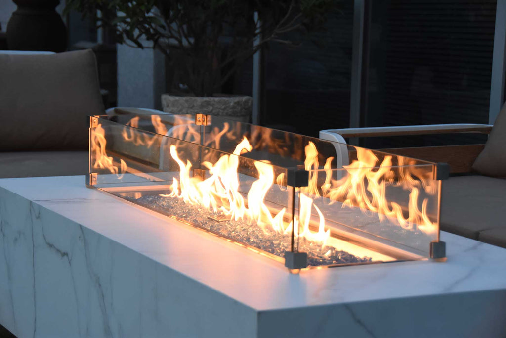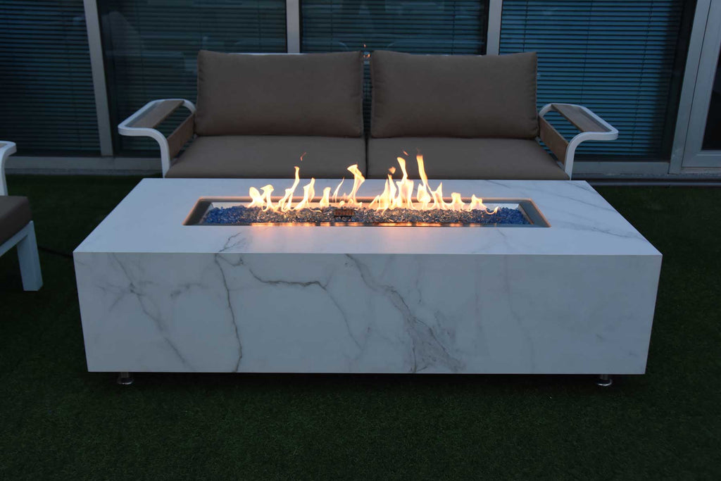 Elementi Carrara Bulgaria black Porcelain and Metal Frame Fire Table - OFP121BW