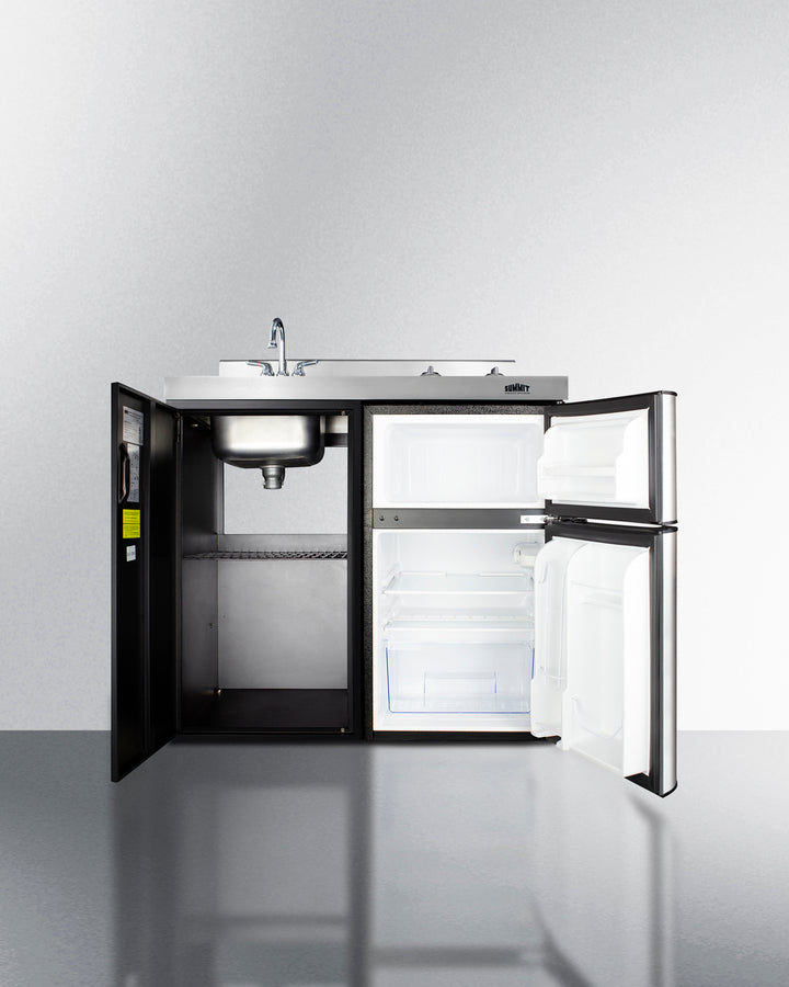 - 2-door refrigerator-freezer included: CP34BSS is packaged inside the kitchenette. This 3.2 cu.ft. ENERGY STAR certified refrigerator includes adjustable glass shelves, door storage, and a freezer compartment