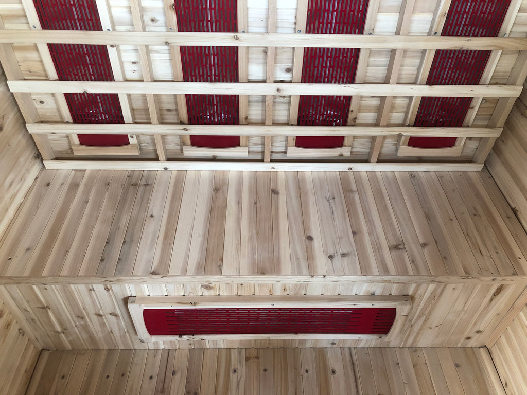 Infrared heaters in the sauna emit FAR Infrared heat which is a narrow band of energy within the 5.6 to 15 micron level. This type of energy closely resembles the natural human spectrum so it’s easily absorbed by the body tissue. The body reacts by sweating profusely which has many health benefits including detoxification, improved blood flow, circulation and weight loss.